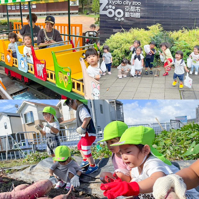おいもほりでは「わあ!!おいもがみえてる。」「あ!!いもむしもいるー!!」とおおはしゃぎして大きなおいもをたくさん掘っておみやげに持ってかえってきたよ。